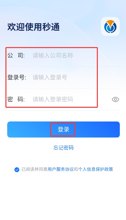 4、返回登录界面后,输入公司名称、账号及密码即可成功登录系统。