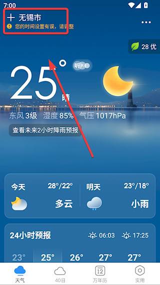 1、下载安装后点击进入好美天气APP,第一步需要开启定位,也支持手动选择