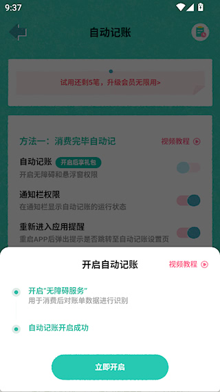 1、自动记账功能:收支操作后自动弹窗,智能识别账单并完成记录,省去手动输入步骤,提升记账效率,减少操作失误。