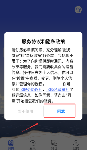 1、首次启动应用时需要仔细阅读并确认用户协议条款,点击同意按钮后即可进入功能主界面开始使用各项服务。