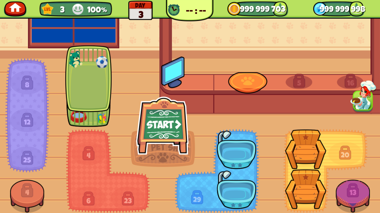 3、包含四大核心活动:宠物美容、宠物医生、宠物洗澡、宠物穿衣,玩法丰富。