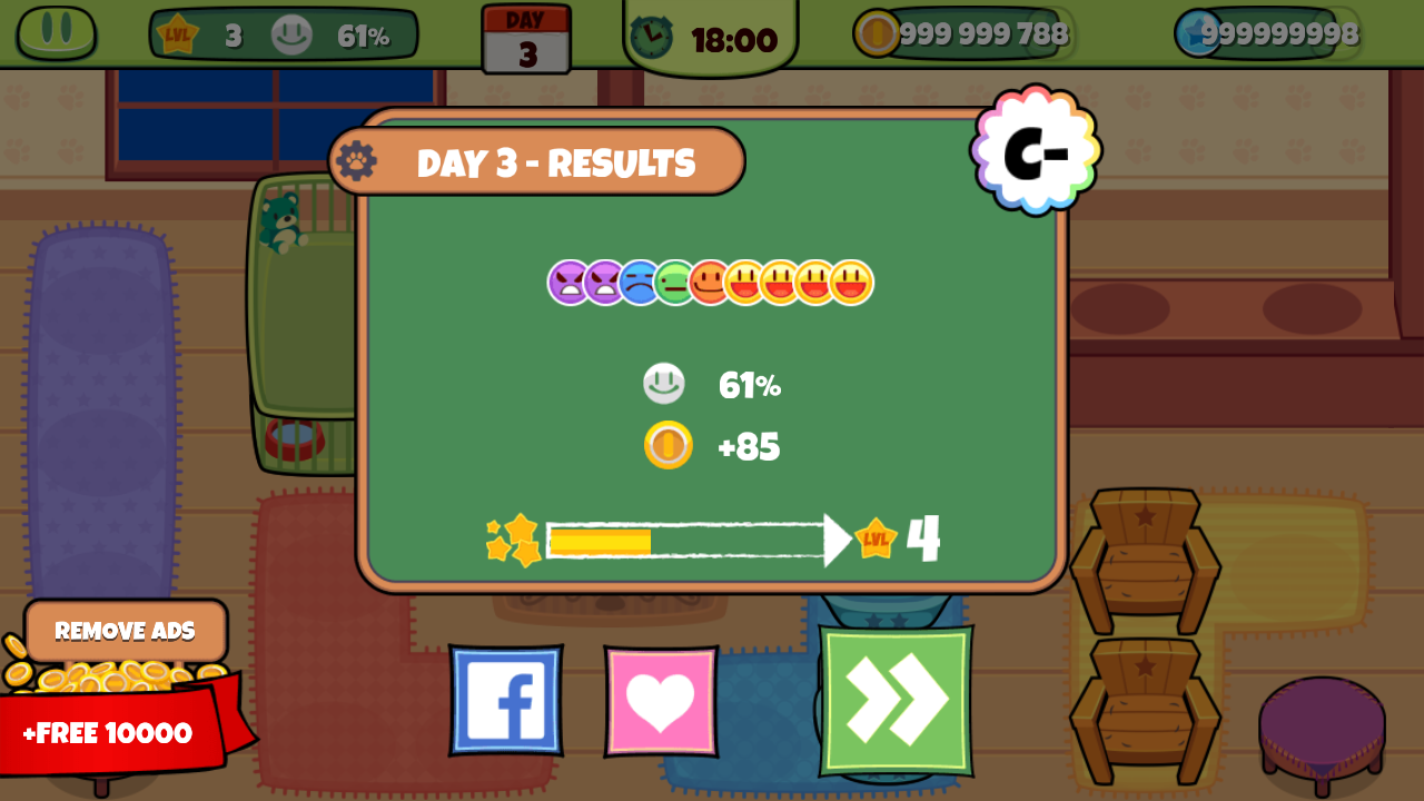 6、观察小猫身边的表情图标,当表情变为紫色时,说明小猫处于不高兴状态,需及时处理需求。
