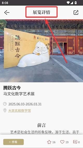 3、点击感兴趣的展览,可查看展览的展览详情