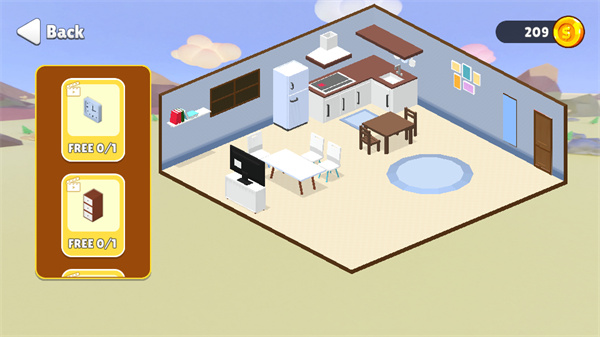 2、点击 “ROOM” 选项,可进入专属空间对小窝进行装饰,打造符合个人喜好的场景。