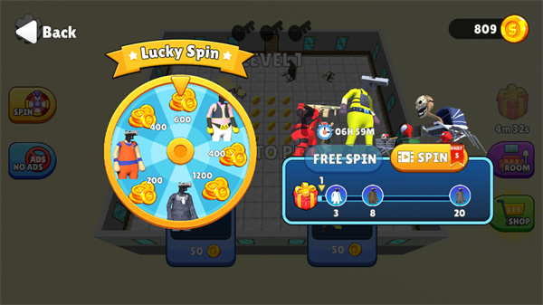 4、点击 “SPIN” 可参与抽奖,有机会抽取皮肤或大量金币,丰富游戏道具与外观选择。