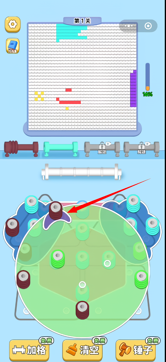 1、每个关卡会给出需完成的图案目标,需精确控制毛线颜色与走向,以达成图案要求。