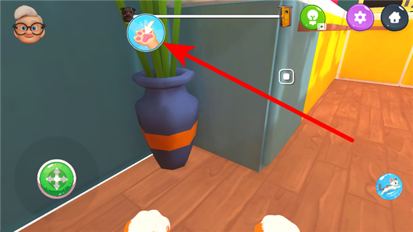1、进入后,会处于室内场景中,首先可根据提示,操作猫咪的爪子,对周围的物品进行互动,比如靠近触碰花瓶。