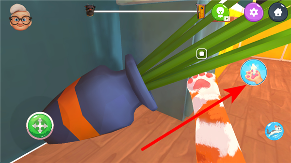 2、当靠近像花瓶这类物品时,点击相应的操作按钮,猫咪就会进行搞怪动作,将花瓶推倒,体验搞怪的乐趣。