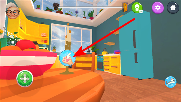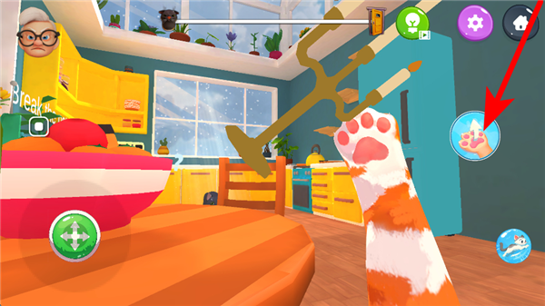 3、接着,还可以寻找其他可互动的物品,比如桌上的摆件等,再次点击操作按钮,让猫咪对这些物品进行搞怪操作,弄倒它们。