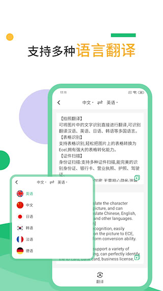 3、 支持识别包括中文、英文、日文、韩文在内的16种语言文字。该功能为外语资料阅读与翻译学习提供了显著便利,突破语言障碍。