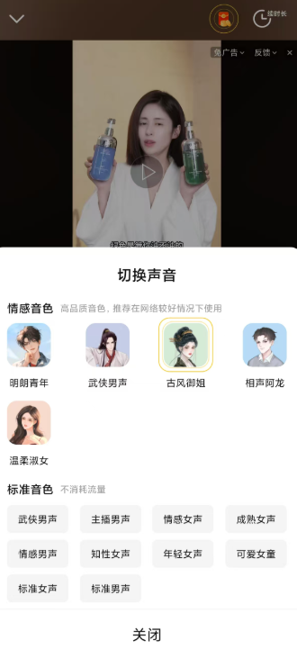 5.根据偏好自由选择音色,即可开始沉浸式免费听书了!