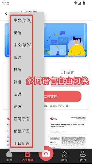 2、 通过拍照功能即时翻译画面中的外语文字,并提供多语种互译服务。