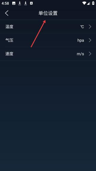3、 打开单位设置界面,可对温度单位、气压单位和风速单位进行个性化设定。选项布局清晰直观,便于根据使用习惯调整显示参数。