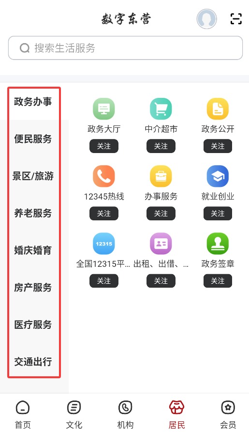 4、居民服务板块集成政务办理、旅游咨询及养老等便民服务一站式入口。