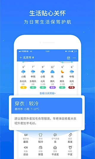 3、掌上天气预报提供涵盖衣食住行多个方面的生活提示服务,以温馨建议的形式辅助日常安排,体现人文关怀。