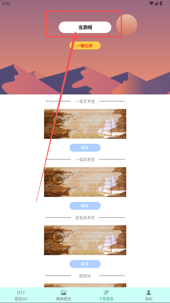 5、能够进行个性签名,在个性签名页面搜索自己要签名的名字,点击一键生成就能生成个性签名