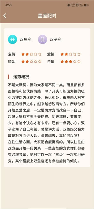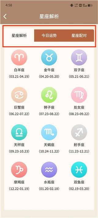 3、集成星座运势解析服务,可查看十二星座的每日运势、每周运势及每月运势分析。运势内容涵盖感情、事业、健康等多个维度,提供相应的生活建议。