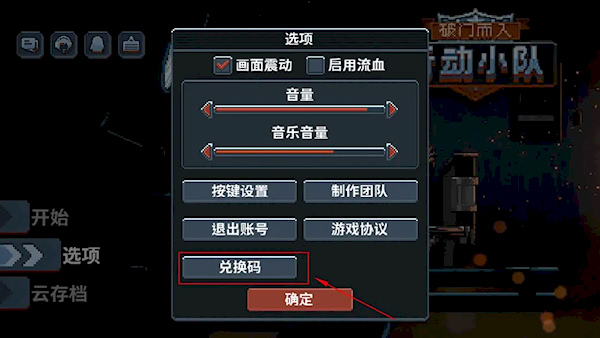 进入游戏后,点击【选项】,再点击【兑换码】按键,输入兑换码即可领取奖励。