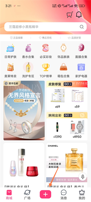 1、进入美哩APP商城模块选购商品,选择底部【+】按钮