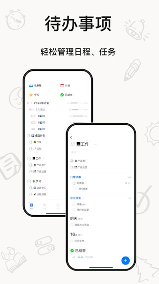1、职场工作规划:梳理每日工作任务并标注优先级,追踪各任务耗时,通过统计报告优化工作流程提升效率。