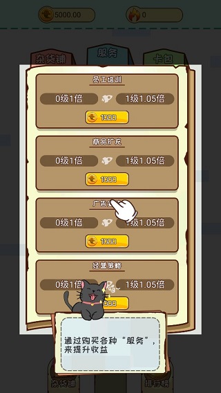 4、与此同时,同在“商城”里可以购买的还有服务,点击“服务”界面,然后购买你要的服务,来提升杂货铺收益。