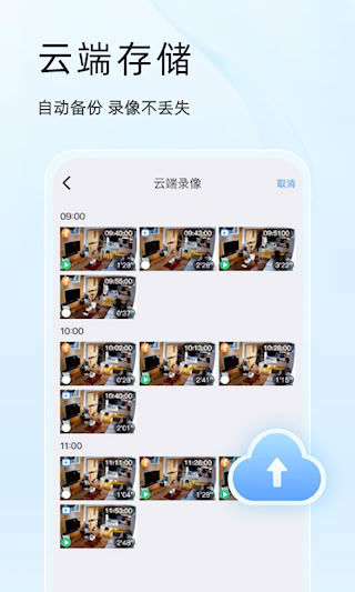 4、易视云支持录像文件的云端与本地存储双重方案。重要时间段的录像可自动上传至加密云空间,同时支持存储卡本地备份,方便后续按时间轴检索和回放历史记录。