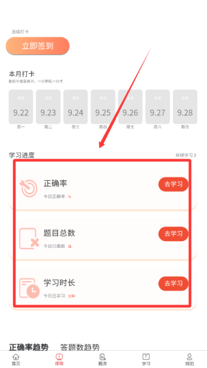 3、个人学习中心:完整展示学习总时长与成绩变化曲线等关键数据,辅助宏观掌握备考进度与状态。