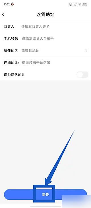 4、依次填写收件人姓名、联系电话和详细地址等必填信息,确认无误后点击底部保存按钮完成操作。