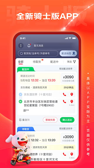 京东酒世界骑士版是专为酒水配送场景设计的移动工作平台,系统与京东酒世界后台管理系统实时对接,确保订单信息在不同环节间流畅流转。包含智能派单、路径规划、状态更新等核心模块。会根据配送员实时位置与任务负荷进行订单分配,并提供最优配送路线建议。电子签收、异常上报、费用结算等功能均集成在操作界面中,减少纸质单据的使用。