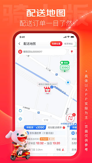 2、京东酒世界骑士版内置专业导航系统,可一键规划最优配送路线。实时显示交通状况与预计送达时间,支持手动调整路线规避拥堵路段。