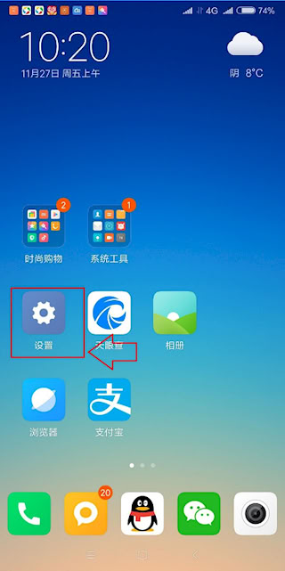 1、点击设置
