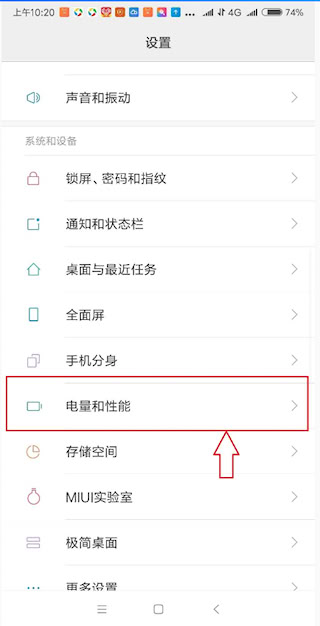 2、点击【电量和性能】