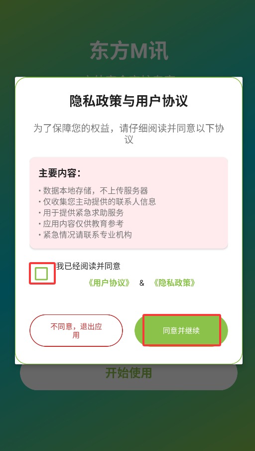 1、首次启动应用时,请点击弹窗中的同意选项,方可进入主界面开始使用。