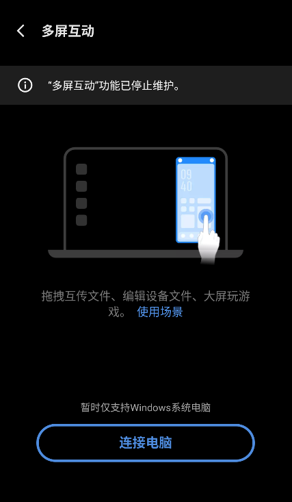 现状:功能已下线,但页面仍提供了 【连接电脑】 的入口,可能指向其他替代方案。