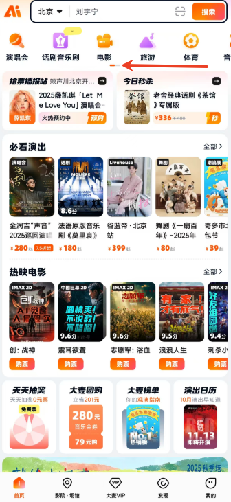 大麦网app怎么查看今日秒杀福利