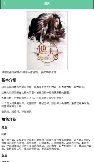 3、从小说列表中选取感兴趣的作品,点击查看详细内容简介和人物介绍。