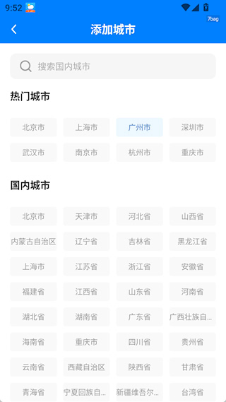 3、城市批量管理:通过“添加城市”功能录入常用城市,左右滑动主界面即可切换,便捷查看多地天气。