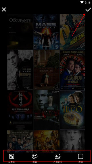 5、所有编辑操作完成后,点击页面右上角的 “√”,即可保存编辑好的美照。