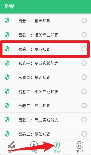 4、在密卷栏目可选择各类密卷练习,涵盖基础知识、专业知识、实践能力等核心知识点模拟训练。