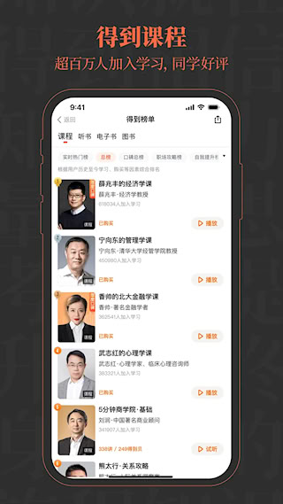 1、得到提供超过380门结构化课程,涵盖商业、人文、技能等领域。课程形式包含音频视频、图文讲义与课后练习,构建系统化学习路径。
