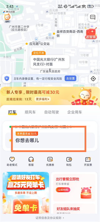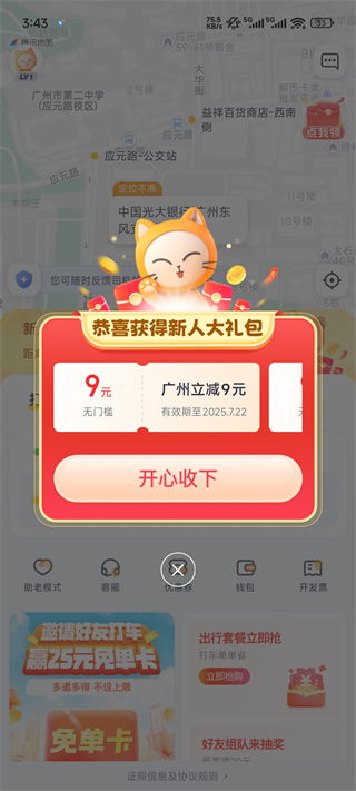 1、启动如祺出行最新版,新用户可领取无限制红包