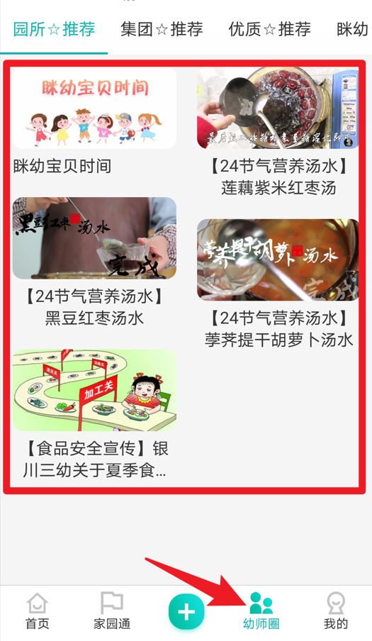 5、在幼师圈中,可以浏览园所推荐的文章与视频,获取幼教资讯与学习资源。