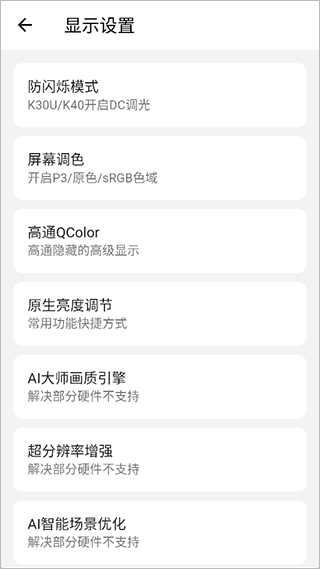 3、若需高清游戏画质,可在显示设置中调节隐藏的屏幕画质参数;