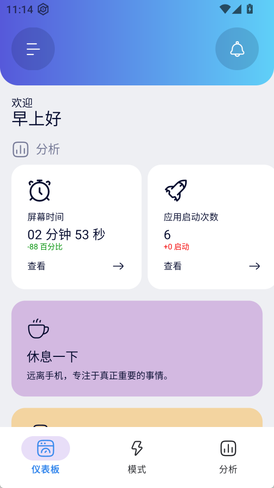 1、【仪表板】界面能查看亮屏时间、应用启动次数等信息