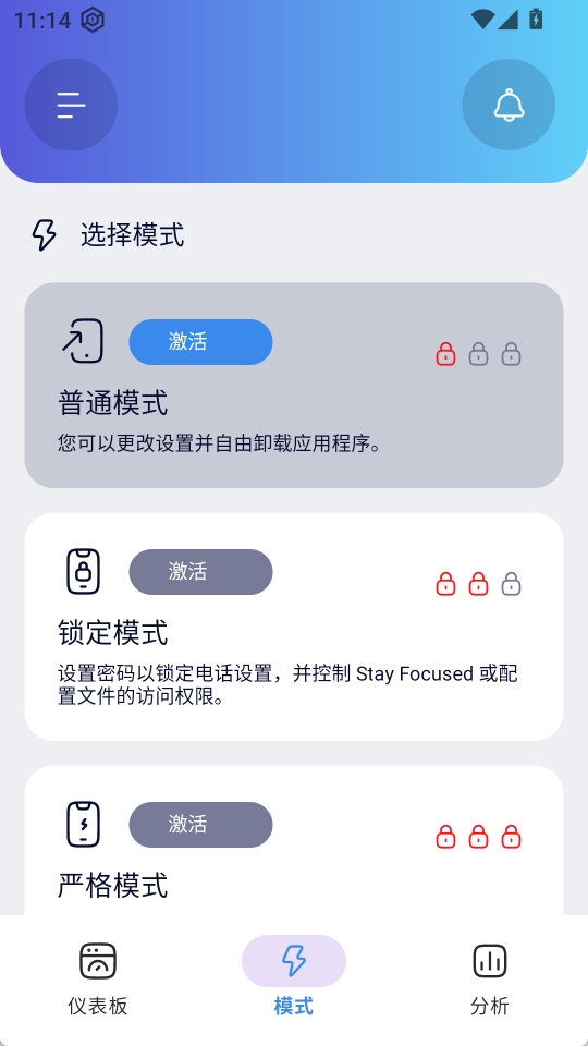 4、严格模式防护:开启后需通过PIN密码、扫码或回答问题等方式解锁,增加解锁难度,强化关键时段的专注度。
