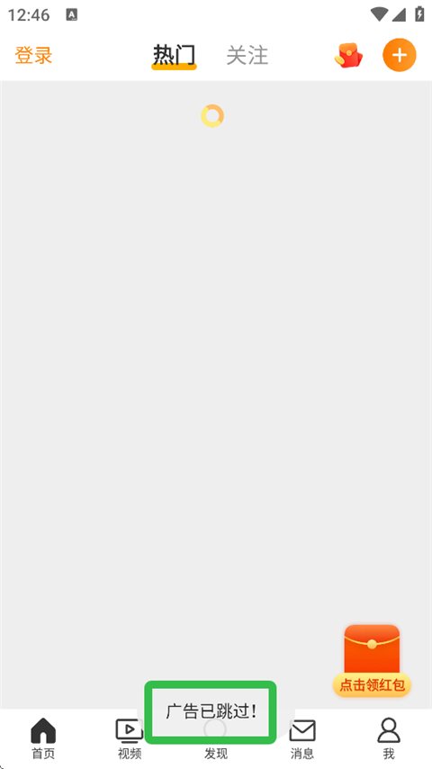 7、后续打开其他应用时,屏幕会显示【广告已跳过】的提示信息;