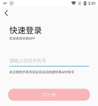 1、在本站下载听景 app,打开后用手机号及验证码完成注册登录;