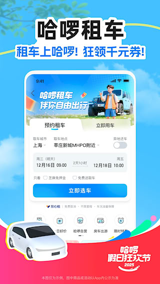 5、租车服务对接信用体系,符合标准可减免双重押金。支持送车上门与车型锁定。