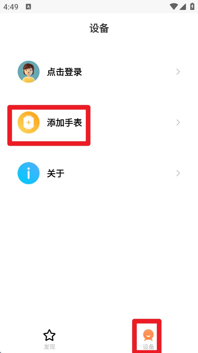 4. 切换到底部设备页面,点击添加手表按钮即可开始设备绑定流程。