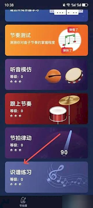 2. 在节奏训练主区域,选择并进入识谱练习模块。